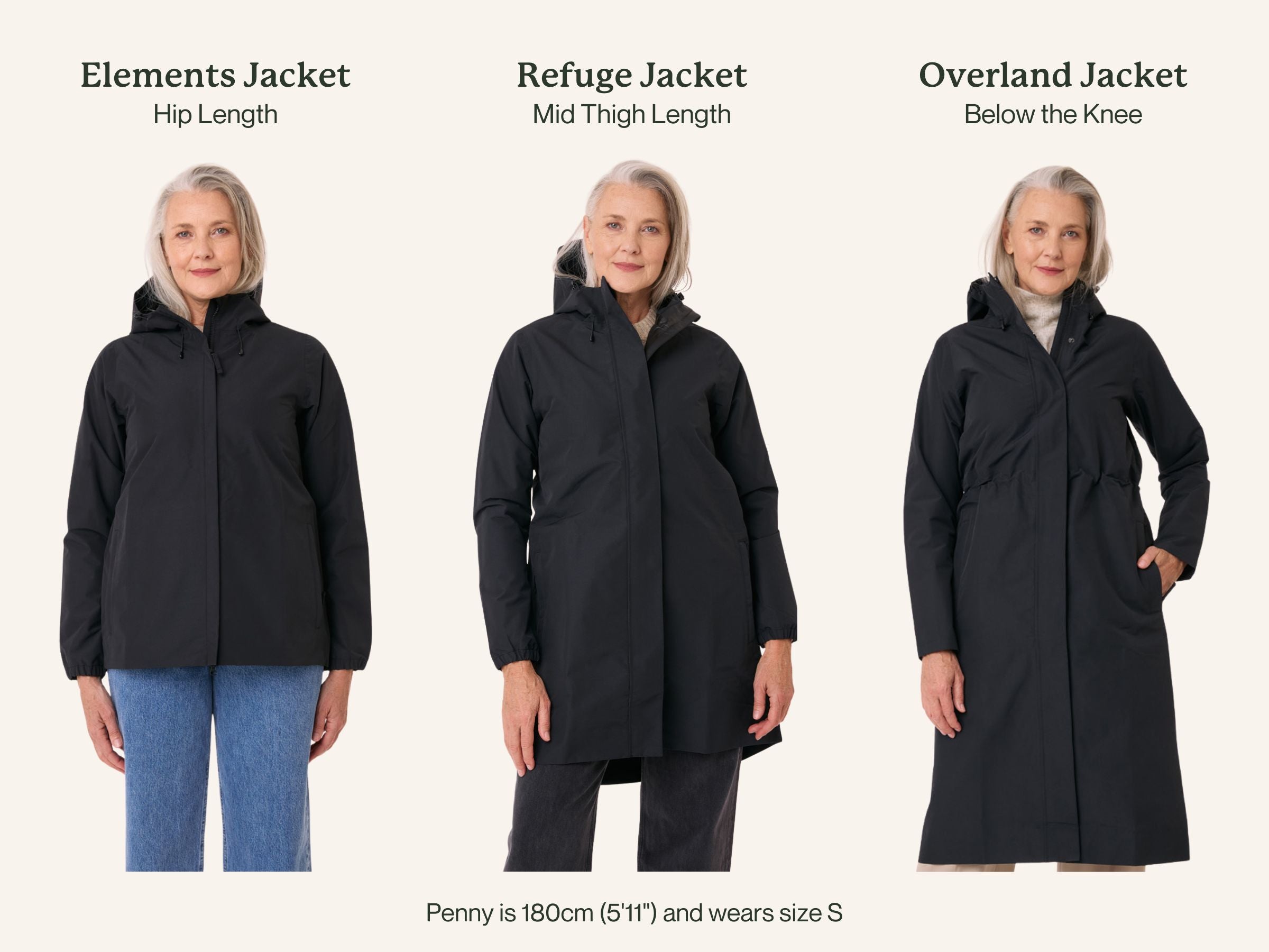- Overland Jacket length is 119cm